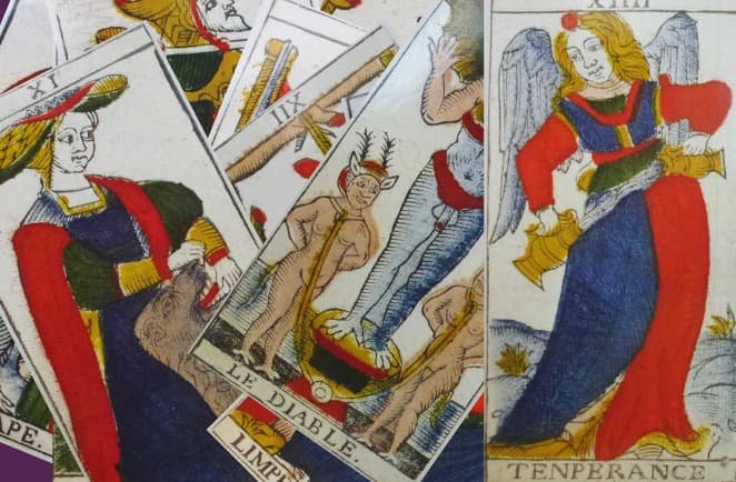 Connaissez-vous le Tarot de Marseille ?Testez-vous et voyez votre résultat "Connaissez-vous bien le Tarot de Marseille ?" Page 1 sur 20Combien de cartes en totalité comporte le Tarot de Marseille ? 52 56 78 Page 2 sur 20Parmi ces visages de femmes, lequel est celui de l'Impératrice ? 1 2 3 Page 3 sur 20Et parmi ces visages d'hommes, lequel est celui du Bateleur ? 1 2 3 Page 4 sur 20De quand date-t-on l'origine du Tarot de Marseille ? 150 ans 300 ans 700 ans Page 5 sur 20Le Tarot de Marseille est subdivisé en 3 groupes : les arcanes majeurs, les arcanes mineurs et ? Les atouts Les figures Les numéros Page 6 sur 20Quel arcane correspond le plus à la notion de guide ? Le pape L'empereur Le soleil Page 7 sur 20Quel tirage de cartes est l'un des plus connus ? Le tirage en triangle Le tirage en rond Le tirage en croix Page 8 sur 20Quel personnage est représenté avec des attributs mi-homme mi-femme ? Le Justice Le Diable La Force Page 9 sur 20Cochez toutes les significations qui peuvent être normalement dites sur cet arcane Changement de situation Amusement en perspective Travailler est mieux que ne rien faire La situation tourne en tond Gain d'argent possible Page 10 sur 20A quels numéros de cartes correspond le couple Papesse-Pape ? 2 et 5 3 et 5 3 et 6 Page 11 sur 20Dans les arcanes mineurs, il existe 4 groupes : les coupes, les bâtons, les épées. Quel est le 4è ? Les pièces Les piastres Les deniers Les sesterces Page 12 sur 20Quelle carte du Tarot de Marseille n'existe pas ? L'Etoile L'Astre La Lune Le Soleil Page 13 sur 20Pour quelle raison l'arcane du Mat est-il spécial ? Il ne porte pas de numéro Il n'a aucune signification précise lors d'un tirage, car il s'agit du joker Il n'est jamais utilisé pour les tirages en croix Page 14 sur 20Cet animal fait partie d'un arcane. Lequel ? La Maison-Dieu Le Jugement Le Monde Page 15 sur 20Un consultant envisage de déménager et si c'est opportun de le faire. Quel tirage à une seule carte offre une réponse positive à sa question ? La Force Le Chariot L'Hermite Page 16 sur 20Il existe deux couples qui peuvent représenter le père et la mère. Lesquels ? Plusieurs réponses possibles Soleil - Lune Bateleur - Tempérance Chariot - Impératrice Soleil - Etoile Hermite - Justice Page 17 sur 20Quel arcane tiré à l'envers se retrouve finalement la tête à l'endroit ? Le Suspendu Le Pendu Le Condamné Page 18 sur 20Combien d'arcanes comportent des animaux ? 4 7 10 Page 19 sur 20Quels arcanes symbolisent fortement les douleurs psychologiques ? Plusieurs réponses possibles La Justice La Maison-Dieu La Lune L'Arcane-sans-Nom L'Hermite Page 20 sur 20Dernière question. Quel est le but du Tarot de Marseille ? Plusieurs réponses possibles De prendre du plaisir De se développer personnellement De trouver des chemins pour avancer dans la vie Prêt à envoyerCe test est gratuit et ne nécessite pas vos coordonnées.Si vous souhaitez toutefois recevoir le résultat pas e-mail, veuillez remplir les champs suivants.Sinon cliquez sur "Passer et continuer" en bas de page.Bon AmusementAdresse de messageriePrénomDémarrer le quizPasser et continuer